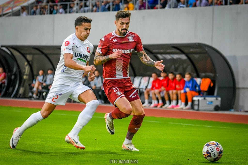 În tur, la primul meci al Rapidului pe noua arenă din Sibiu, cele două formații au încheiat la egalitate, 1-1, după ce Alex Ioniță a deschis scorul devreme.