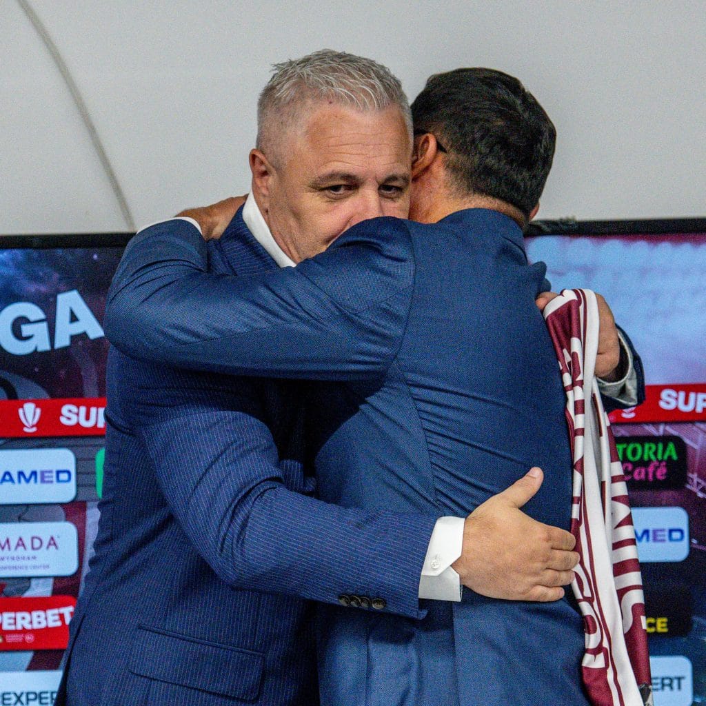 “Sunt clipe pe care probabil le trăiești rar în viață. M-am întors acasă! Am avut o surpriză, de fapt, nici nu știu dacă o pot numi surpriză pentru că, din ceea vedeam din exterior că se întâmplă la Rapid, de data aceasta am ajuns aici și am găsit, cred că fără să laud pe cineva, un club extraordinar de bine structurat, în toate segmentele, cu oameni care își fac treaba, pe fiecare palier. Acestea sunt lucruri care îi dau unui antrenor liniștea de a se ocupa doar de ceea ce presupune partea tehnică și de a pregăti echipa, ca, într-un final, rezultatele să fie pozitive. Mă bucur!