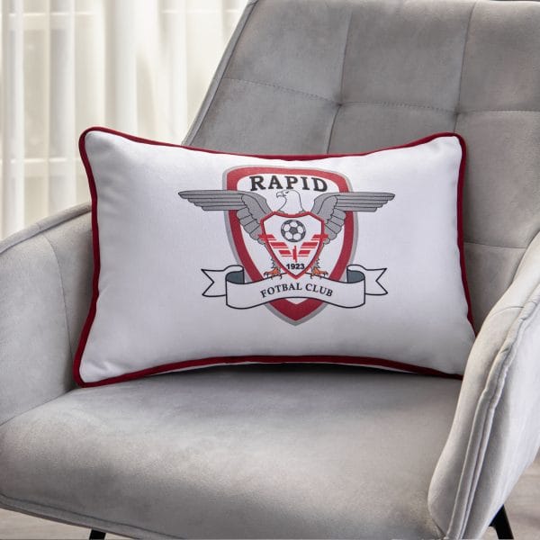 Pernă decorativă Rapid 1923. Savurați și acasă experiența din tribune, susținând echipa favorită în livingul suporterului rapidist. Bucurați-vă de fotbal într-un cadru deosebit, personalizându-vă spațiul cu emblema Rapid.