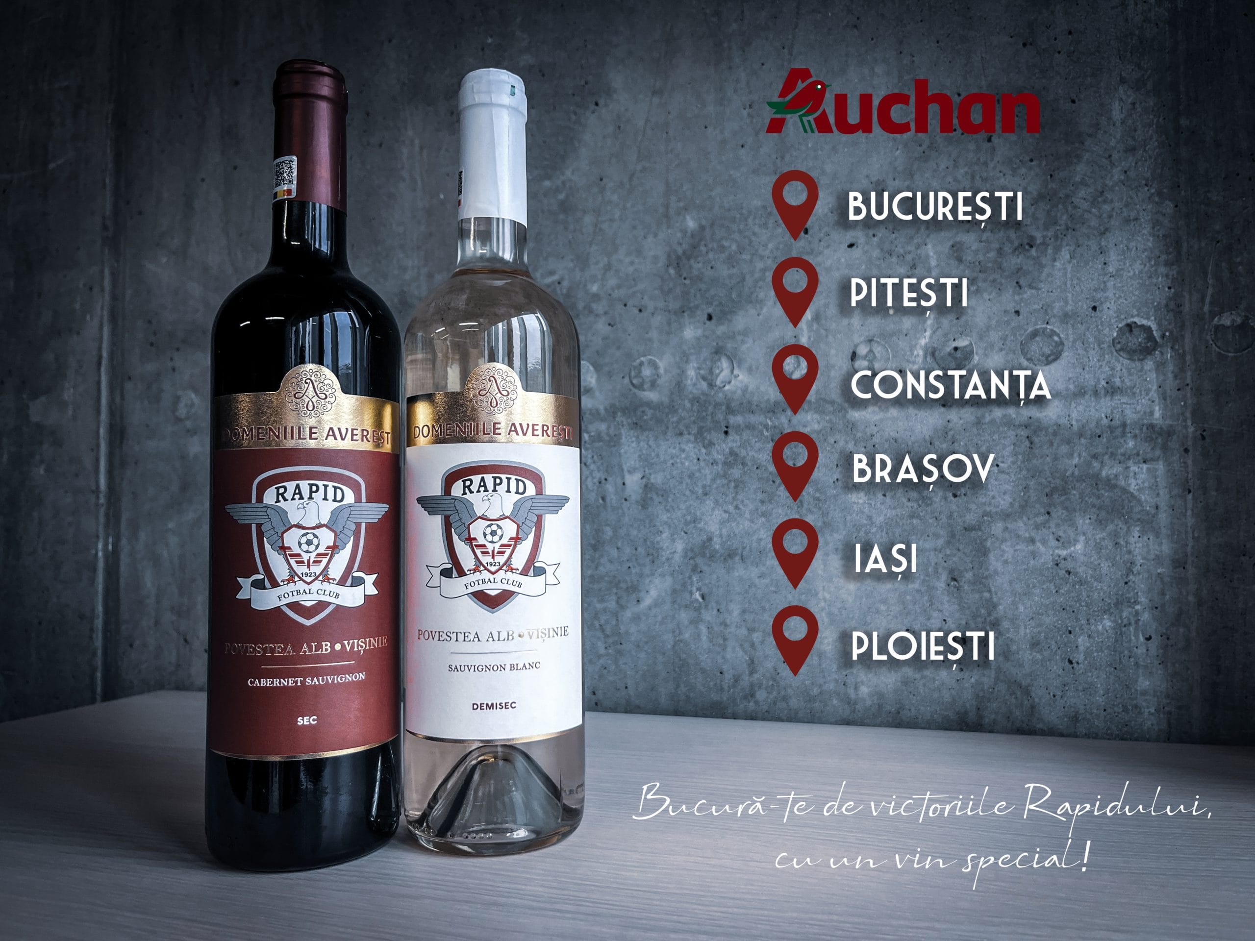 Acum, vinul giuleștean „Povestea alb-vișinie„, produs de Domeniile Averești, poate fi găsit în 16 magazine Auchan, din 6 orașe: